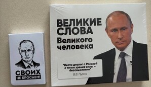 На коробке конфет с изображением президента РФ написано "Великие слова Великого человека" и одна из цитат Путина: "Вести диалог с Россией с точки зрения силы - бессмысленно".РИА Новости