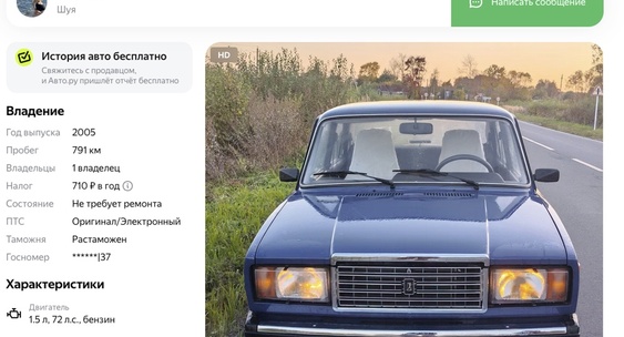 На одном из автомобильных агрегаторов появилось объявление о продаже весьма интересной "капсулы времени" - ВАЗ 2107 2005 года выпуска с мизерным пробегом в 791 километр.Российская газета