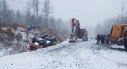 В Сахалинской области специальное транспортное средство опрокинулось на заснеженной трассе к угольному карьеру.Известия