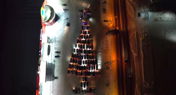 На парковке одного из торговых центров машины выстроились в идеальную композицию, собравшись в автоелку.Местное время