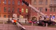 Каршеринговый автомобиль упал в реку Карповку в Петроградском районе Санкт-Петербурга.ТАСС