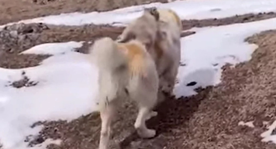 Во вторник в соцсетях распространился видеоролик, на котором кот катается на спине собаки породы алабай, гуляющей по горам.РИА Новости