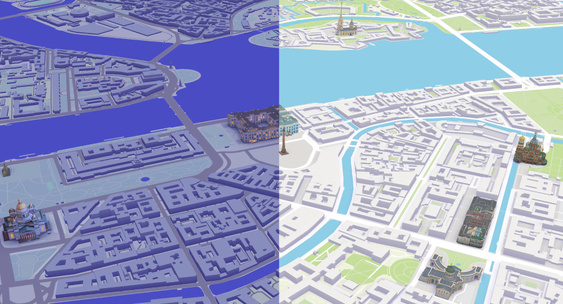 Вместо плоских схем здания, памятники и природные зоны обрели объемные силуэты, что помогает пользователям легче ориентироваться и узнавать знакомые места.Компьютерра
