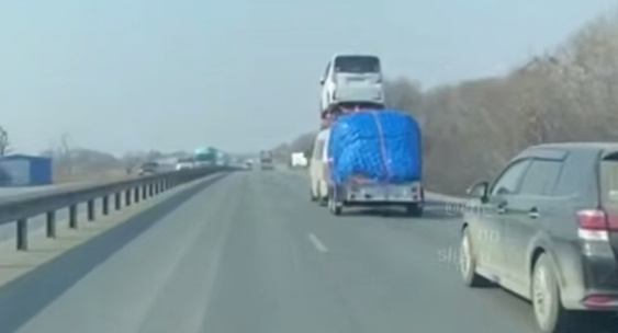 В Приморском крае водитель микроавтобуса, решивший транспортировать другое транспортное средство на крыше своего автомобиля, стал героем видеозаписи.Царьград