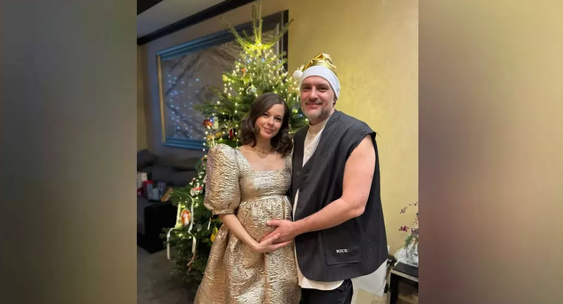 Катерина Шпица снялась с мужем у ёлки, показав округлившийся живот