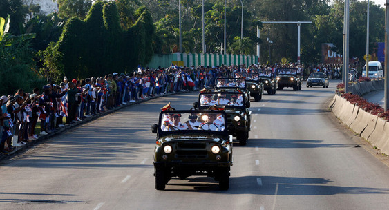 Неподалеку тысячи кубинцев выстроились вдоль одной из самых знаковых улиц Гаваны, чтобы дождаться прибытия тел.RTVI