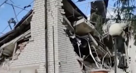 На кадрах видно пострадавшие здания ОВД и пятиэтажный жилой дом.Телеканал Краснодар