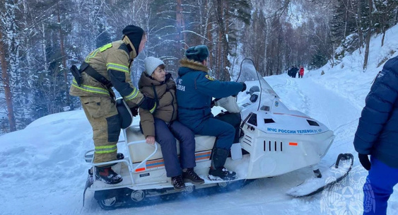 Спасатели эвакуировали мужчину на санях к снегоболотоходу.КП - Новосибирск