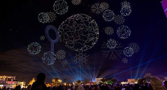 Организаторы задействовали современные системы запуска и визуальной синхронизации, превратив небо над пустыней в грандиозную световую сцену.Известия