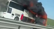 Автобус с 22 пассажирами загорелся на трассе в Дагестане.РЕН ТВ
