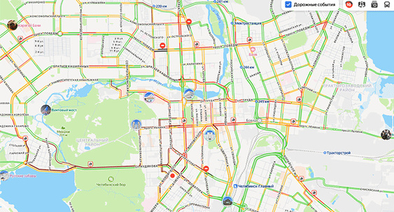 При нажатии на значок на сервисе Яндекс.Пробки появляется информация от очевидцев, что ДТП заняло сразу три ряда.Челябинск Сегодня