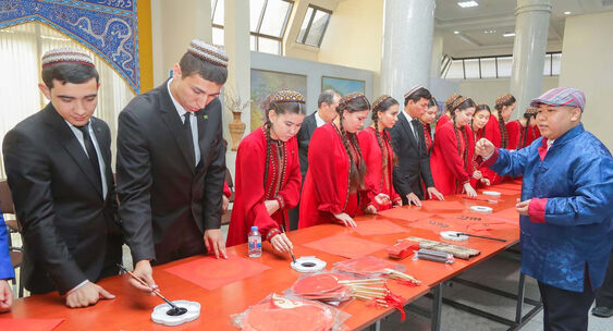 В ходе мастер-класса актриса Пекинской оперы Йен Пэн Дон продемонстрировала метод написания каждого иероглифа, используемые инструменты для каллиграфии, методы быстрого выполнения с помощью демонстрационных листов.Turkmenportal