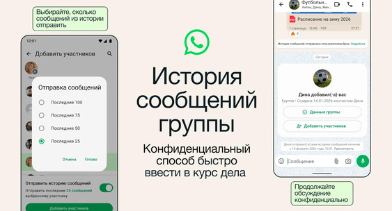 WhatsApp перенял ещё одну функцию Telegram — отправку истории сообщений новым участникам групповых чатов
