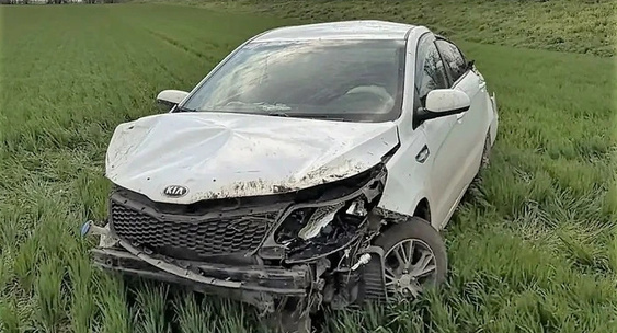 Легковой автомобиль Kia вылетел с дороги в поле и опрокинулся.Сайт Ставрополя 1777.ru