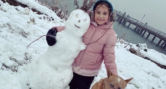 На милых кадрах Айрис позирует со снеговиком, которого слепила сама, и со своим питомцем.Super.ru