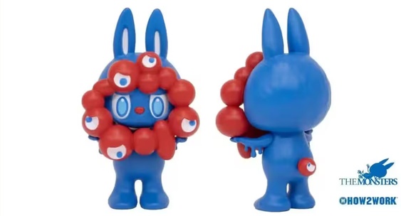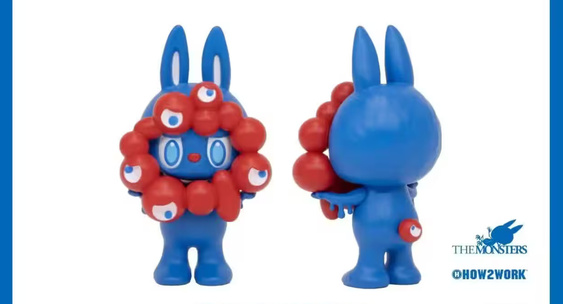 Фигурка представляет собой гибрид: вместо традиционного мохнатого тела у Лабубу гладкая синяя кожа, как у водного существа MYAKU-MYAKU.Канобу