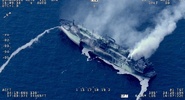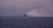 В Сети появились кадры судна, дымящегося после удара в Средиземном море.Life.ru