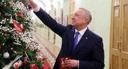 Беглов, как и другие главы регионов, снял с праздничной елки в Большом Кремлевском дворце три открытки с новогодними желаниями.Фонтанка.Ру