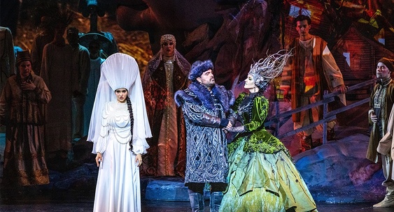 Картинка завораживает - роскошны сценография, насыщенная видеомэппингом, свет и костюмы, кричащие о богатстве.Российская газета