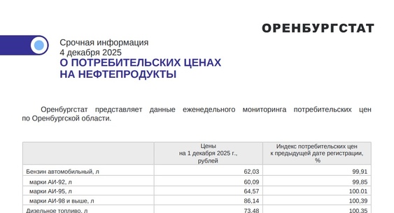 За 10 месяцев 2025 года рост цен на бензин в Оренбургской области превысил 10 %.Oren1