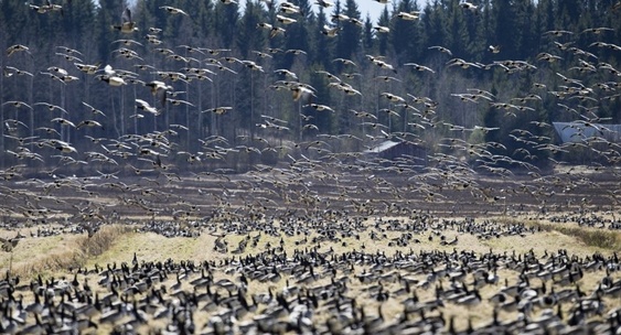 Финляндия ежегодно переживает активную миграцию белолобых гусей, которые сотнями тысяч летят через страну, а во время "привалов" заполоняют поля финских фермеров.