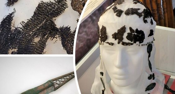 Вместе с тканью в захоронении были найдены бронзовые украшения (в частности накосное украшение, лицевая подвеска, являвшиеся частью единого церемониального головного убора).ТАСС