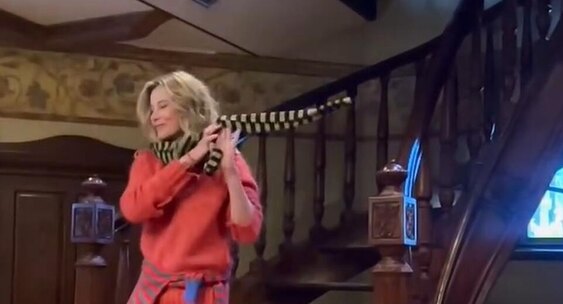 Юлия Высоцкая опубликовала новое видео в своем блоге. В кадрах телеведущая спускается по деревянной лестнице внутри своего дома. Она проживает там вместе с супругом, режиссером Андреем Кончаловским , и детьми.