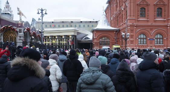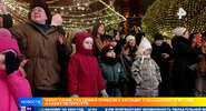 Словно сцена из новогоднего мюзикла, а не Манежная площадь: в сказочных декорациях с персонажами из любимых сказок танцуют взрослые и дети.РЕН ТВ