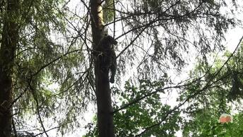 Медведица ради черёмухи айнов вытворяет акробатические трюки на 15-метровой высоте
