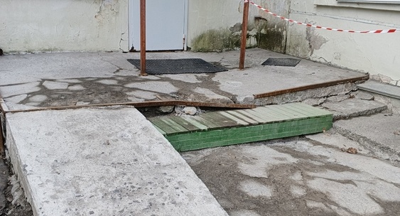 Вместо бетонной ступени – деревянная, на краю обвалившаяся железка.Петрозаводск говорит
