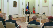 Путин в День защитника Отечества вручает государственные награды военнослужащим, удостоенным звания Героя России и ордена Мужества.РИА Новости