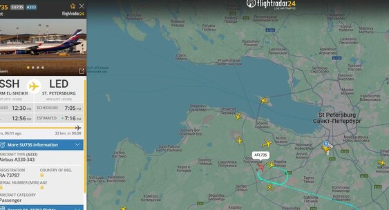 В данный момент над Петербургом также совершают круги самолеты, прибывающие из Калининграда, Москвы, Шарм-эш-Шейха и Уфы.Фонтанка.Ру