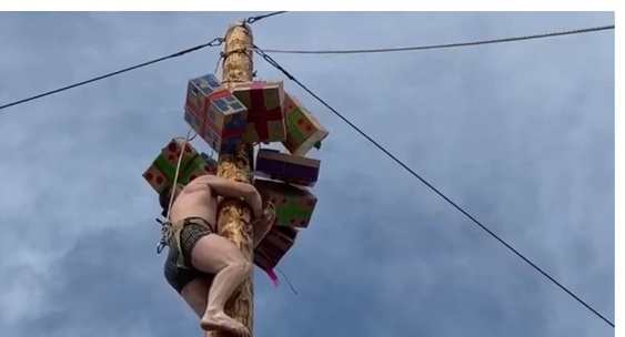 Самые смелые и выносливые мужчины рискнули взобраться на самую вершину и достать подарок.Вести - Орел