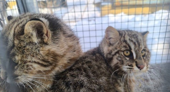 Специалисты одного из подсобных хозяйств Приморья отловили двух дальневосточных лесных котят, которые решили наведаться в курятник.PrimaMedia.ru