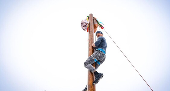 Участники могли попробовать свои силы в различных молодецких забавах: перетягивании каната, боях с мешками, поднятии гири и других развлечениях.Телеканал 360°