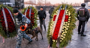 На входе на кладбище установлены рамки металлоискателей, дежурят сотрудники полиции.Smotrim.ru