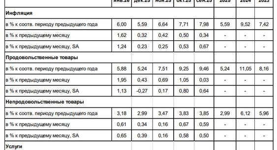 «Повышение НДС, акцизов, индексация регулируемых цен и тарифов, коррекция цен на плодоовощную продукцию привели к временному, но значительному ускорению текущего роста цен в январе».Finam.Ru