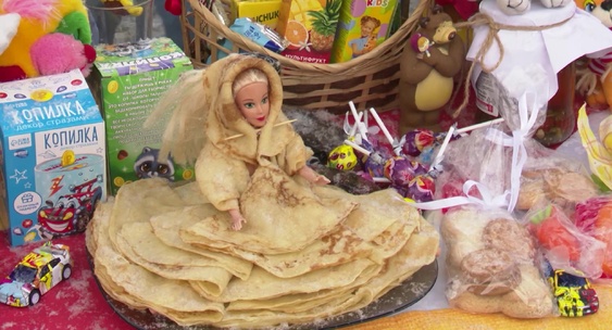 На входе гостей встречают нарядные скоморохи, предлагают послушать концерт, угоститься блином и сфотографироваться на фоне вывески "Уфимская масленица".Российская газета