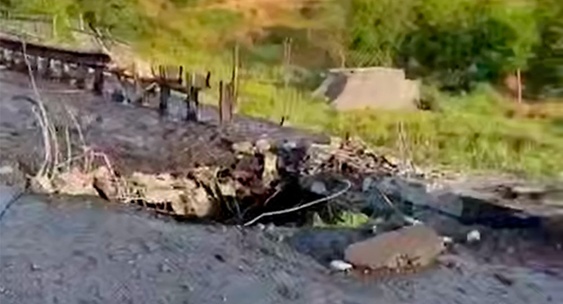 Большую дыру в мосту в зоне СВО после удара ФАБ-250 с УМПК сняли на видео