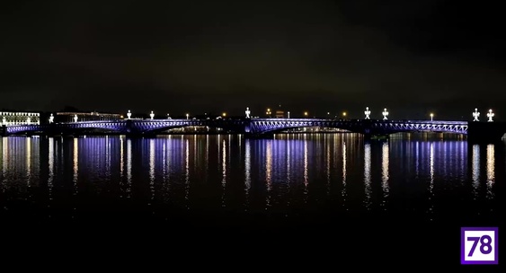 Новая подсветка с градиентными волнами украсила Дворцовый и Троицкий мосты в центре Санкт-Петербурга в честь Дня энергетика.ТАСС