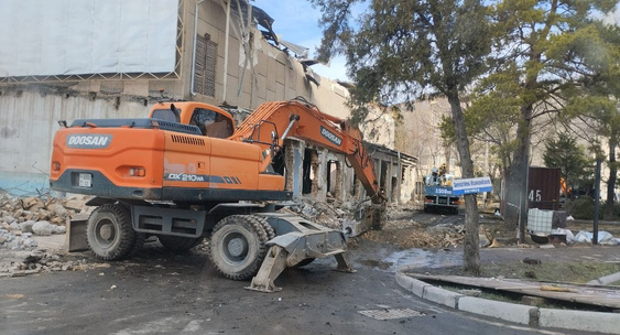 "В настоящее время проводится работа по демонтажу здания. После пожара, произошедшего 5 ноября 2025 года, мэр поручил соответствующим службам принять решение о дальнейшей судьбе объекта, а также ускорить реализацию проекта", — говорится в релизе.Sputnik Кыргызстан