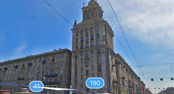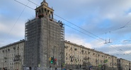 Композиционным центром является угловая башня, выполненная в духе московских высотных зданий 1950-х годов.Петербургский дневник