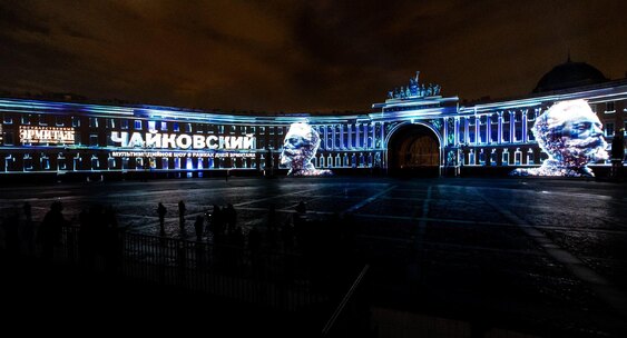 Вечером 6 декабря фасады Главного штаба и Штаба Гвардейского корпуса на Дворцовой площади превратились в гигантскую сцену для масштабного мультимедийного шоу «Чайковский», а также финала конкурса медиаискусства «Страна света».КП - Санкт-Петербург