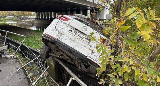 Машина пробила ограждение и упала в реку Яузу в Москве