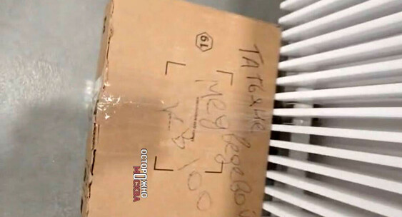 На кадрах, опубликованных в местных домовых чатах в Telegram, запечатлена коробка на имя некой Татьяны.РЕН ТВ