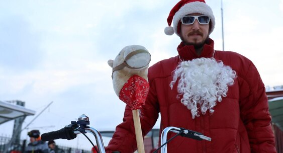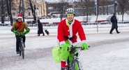В Петербурге стартовал костюмированный велопарад Дедов Морозов и Снегурочек