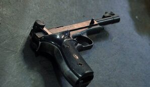 По информации журналистов, пистолет был обнаружен во внутреннем дворе дома, недалеко от подъезда, где проживает высокопоставленный военный.NEWS.ru