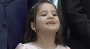 Девочка из Дагестана Сура Шахмарданова во время торжественного открытия обновленного Азербайджанского государственного театра в Дербенте прочитала президенту России Владимиру Путину стихотворение о единстве народов России.РИА Новости