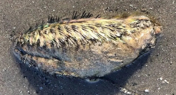 В британском графстве Суффолк волны выбросили на берег загадочное существо с яркими щетинками.Российская газета