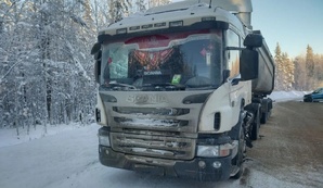 У грузового автомобиля был поврежден топливный бак и аккумуляторный отсек.Фактор - новости Петрозаводска и Карелии